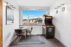 High ceilinged 2 bedroom home, a spacious 80 m2 floor area. North facing city views mean it is light and bright inside and always warm. upgraded kitchen and lots of storage. Great deck for those after work drinks too. Secure carpark included.