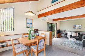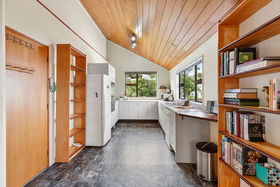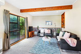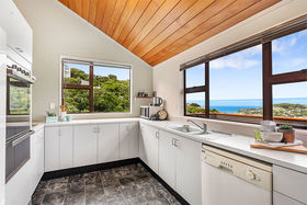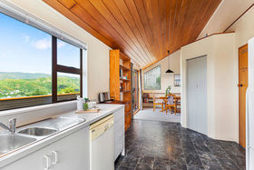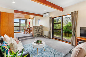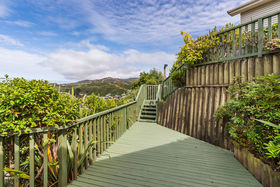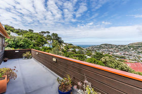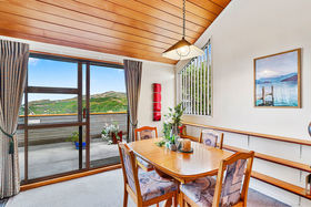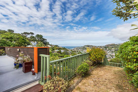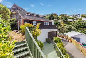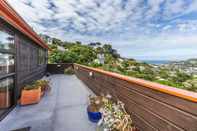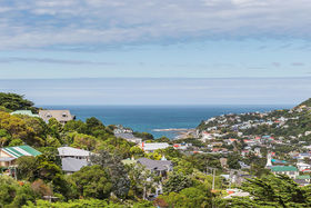 High on the sunny side of Island Bay this cedar-clad three-bedroom home is drive on to garage with internal access and enjoys both late sun and sweeping views over Island Bay to Cook Straight and the South Island.