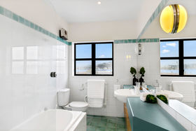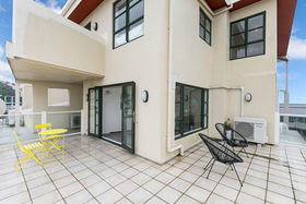 Spread out over two floors, there's space for everyone with the living and dining areas separated by the kitchen, there's chillout zones at either side of the apartment. The living area enjoys views over Thorndon, the harbour towards Oriental Parade and the dining area flows to the large deck to enjoy the afternoon sun with plenty of room to entertain friends and family.