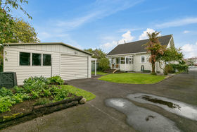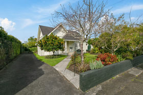Coming in closer to home, this weatherboard bungalow is very appealing. The garden is sprinkled with established and mature trees including lemons, oranges, feijoas, plums, and a passionfruit vine. Also a budding vege patch. How special is that!