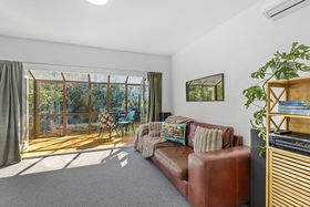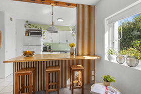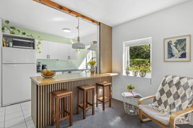 This light-filled ground floor apartment is nestled in a thoughtfully designed Eisenhoffer building, known for its 1970s modernist aesthetic and quality finishes. A peaceful retreat with garden views and exceptional privacy, this one-bedroom gem is both compact and cleverly laid out, offering approximately 60m² of well-appointed living.