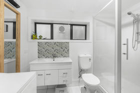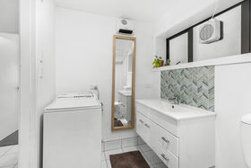 • Modern bathroom fitted to match the apartment's updated aesthetic